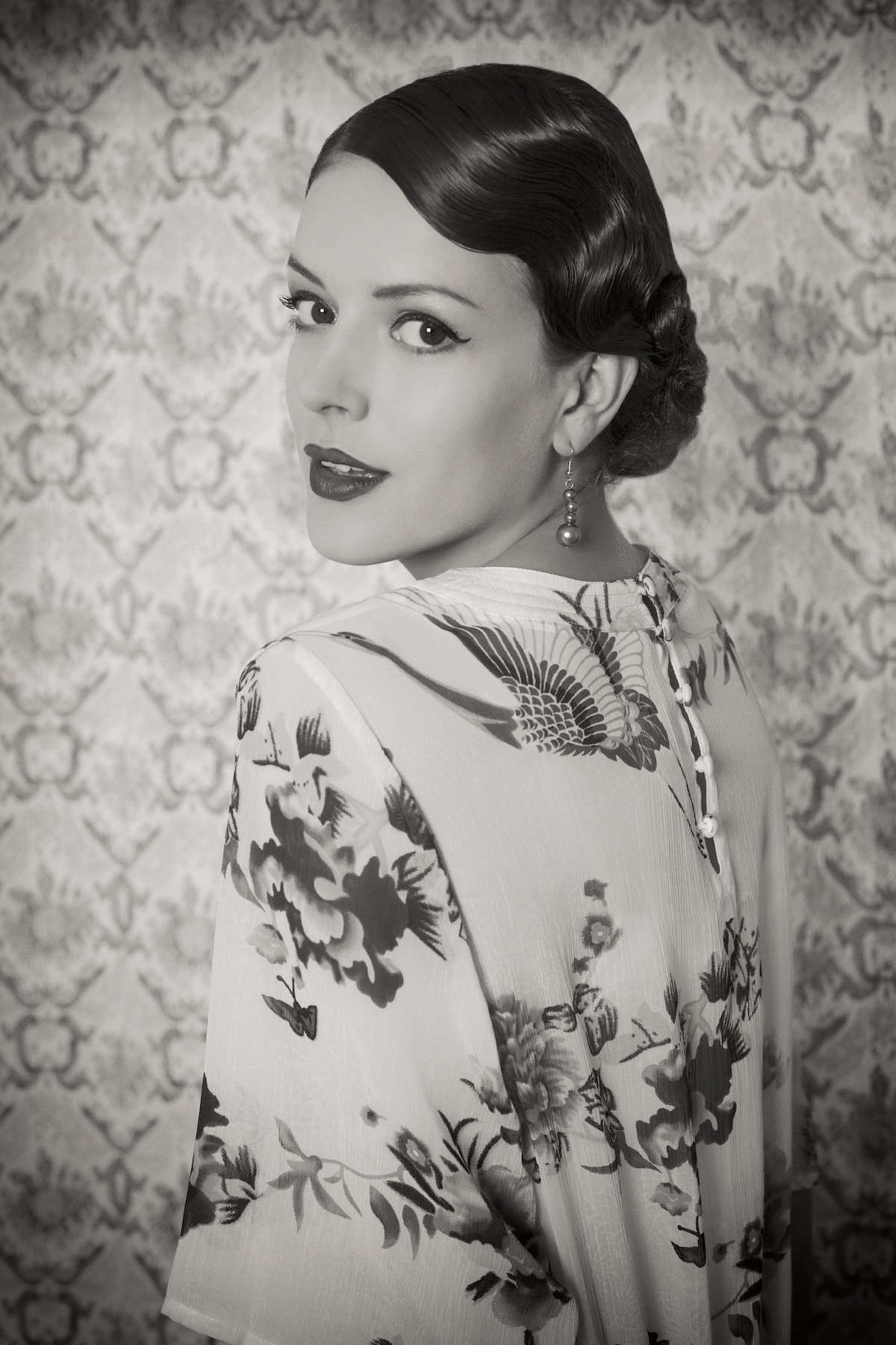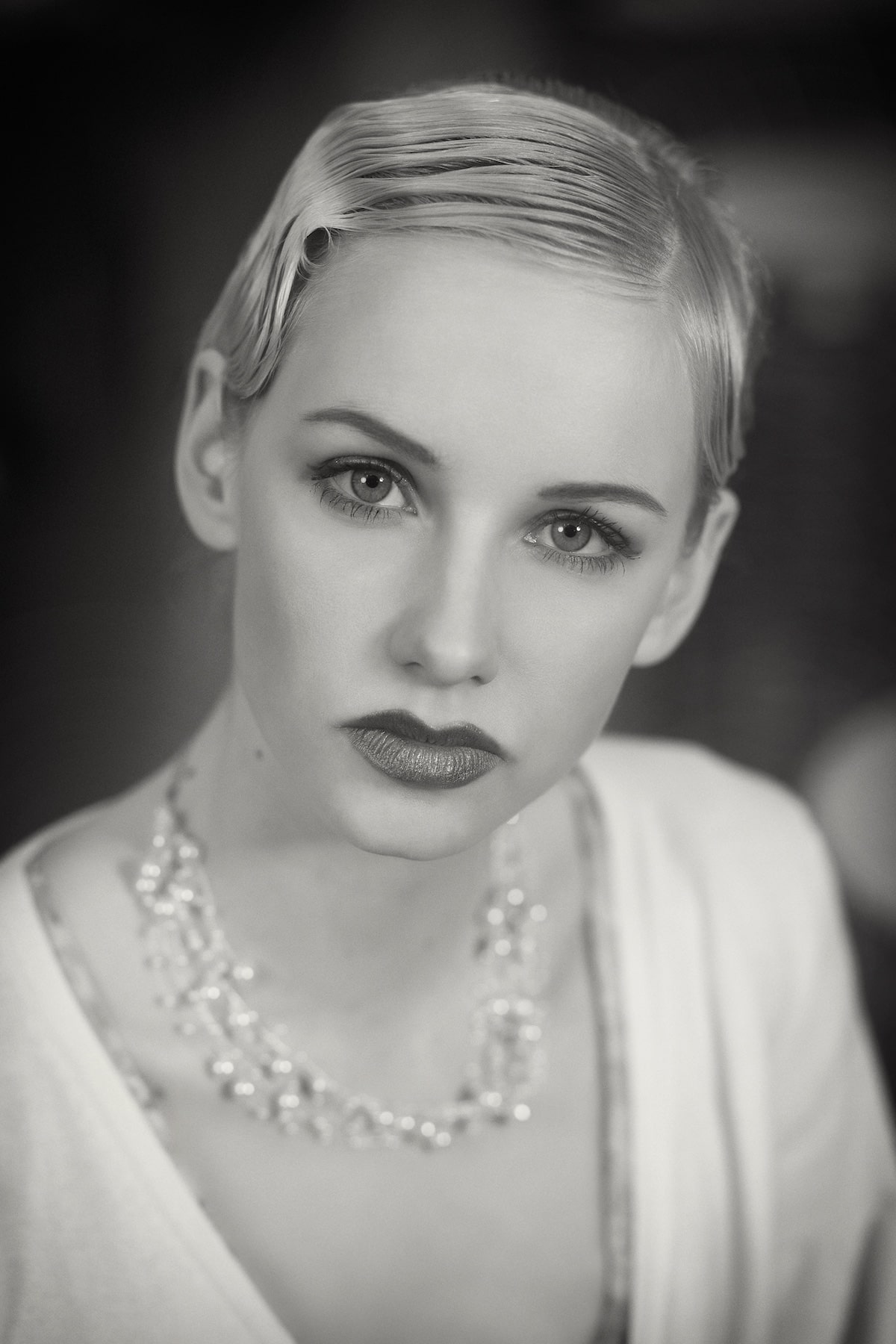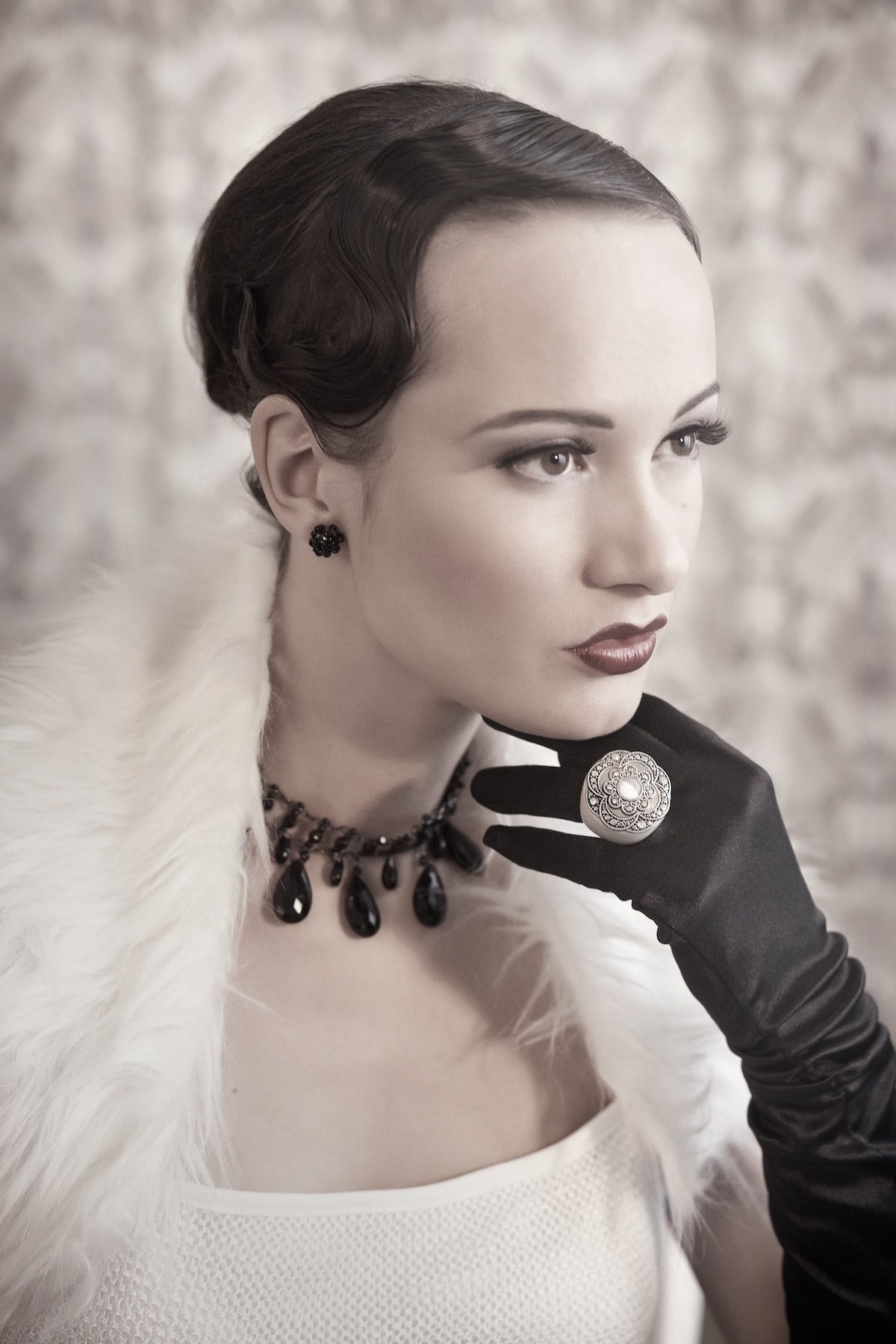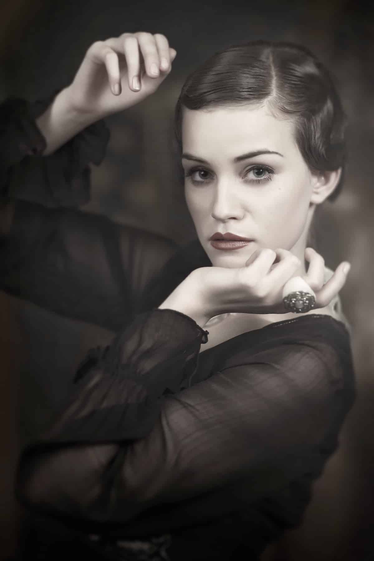 - Experimenty s nasvícením (klasická světelná schémata evokující glamour a dobový portrét).